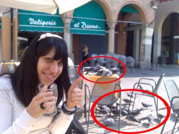 piccioni sui tavoli di piazza duomo, due di pomeriggio