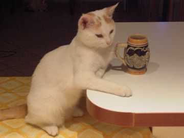 Dopo attenta e ponderata valutazione su quale dei miei 14 gatti mostrare, ancora una volta opto per il gatto alcolico in posizione da osteria